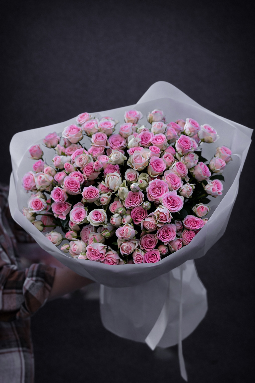 Ніжний букет із кущових троянд у пудрово-рожевих відтінках, що створює відчуття легкості, гармонії та витонченого смаку.