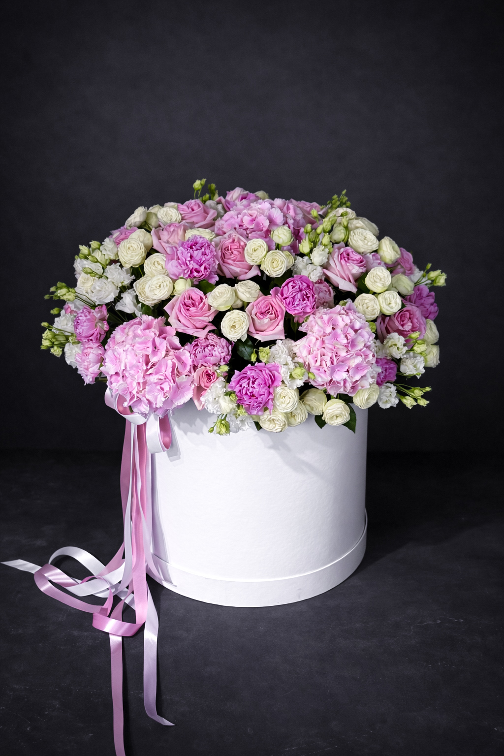 Витончена авторська композиція в елегантній коробці, де кожна деталь підкреслює ніжність, гармонію та бездоганний стиль.