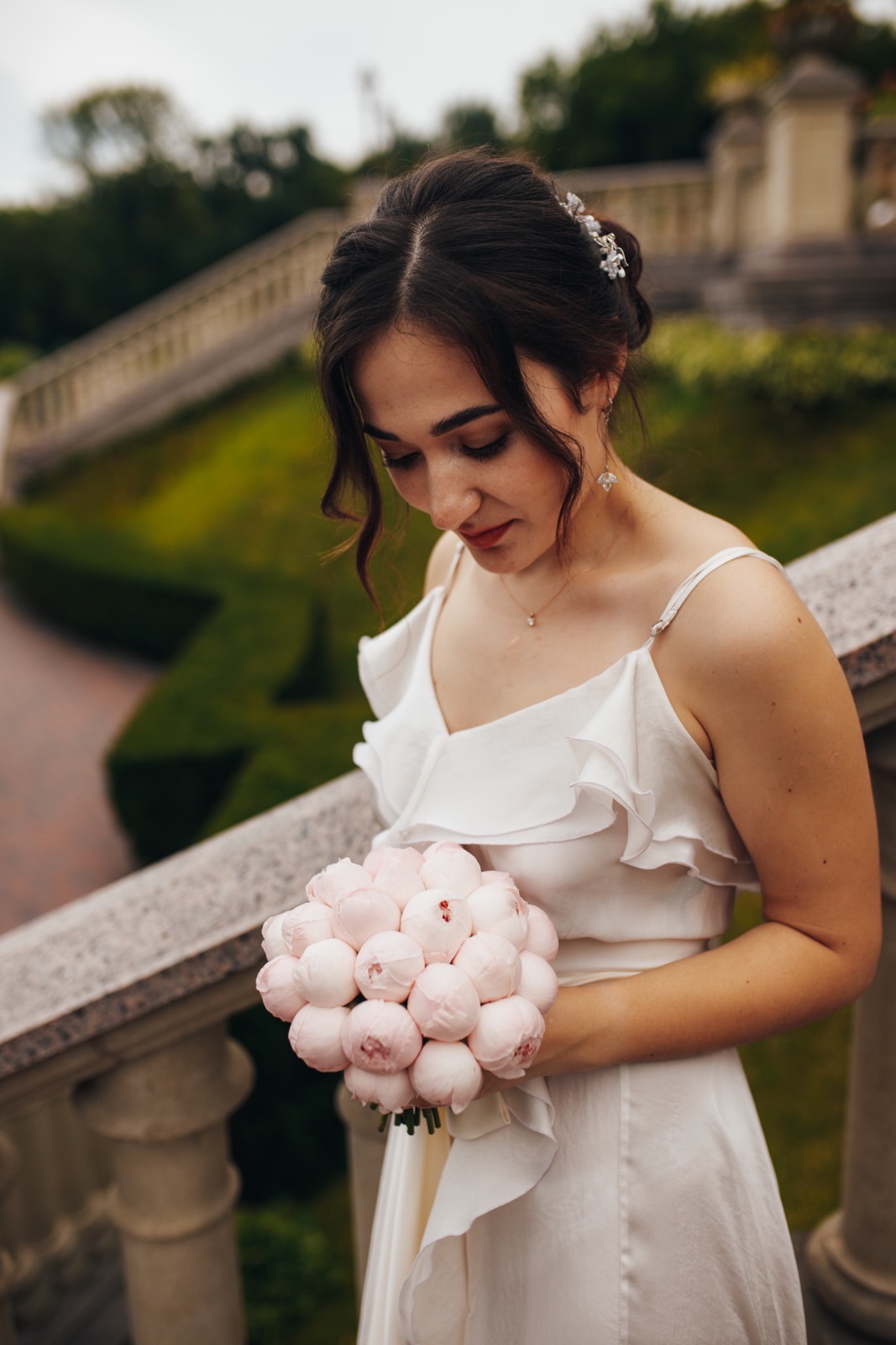 Весільний букет із піоновидної троянди сорту Peony Pink у ніжному пудрово-рожевому відтінку.